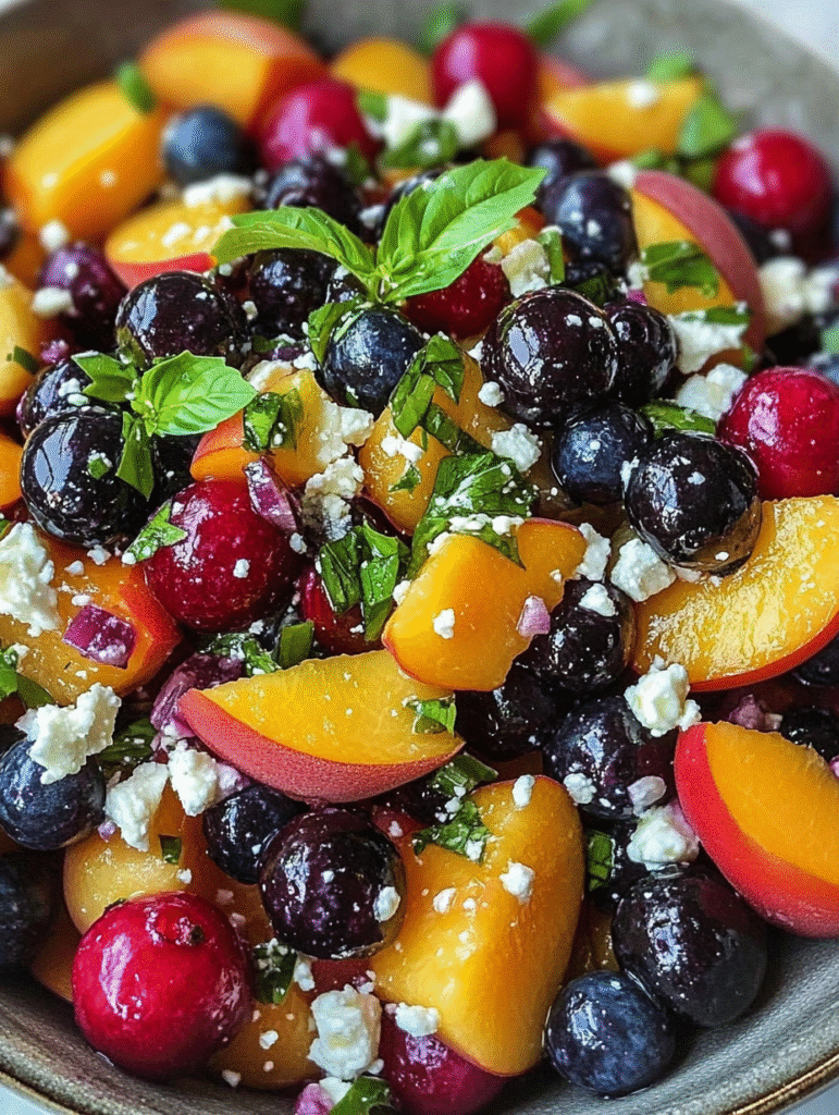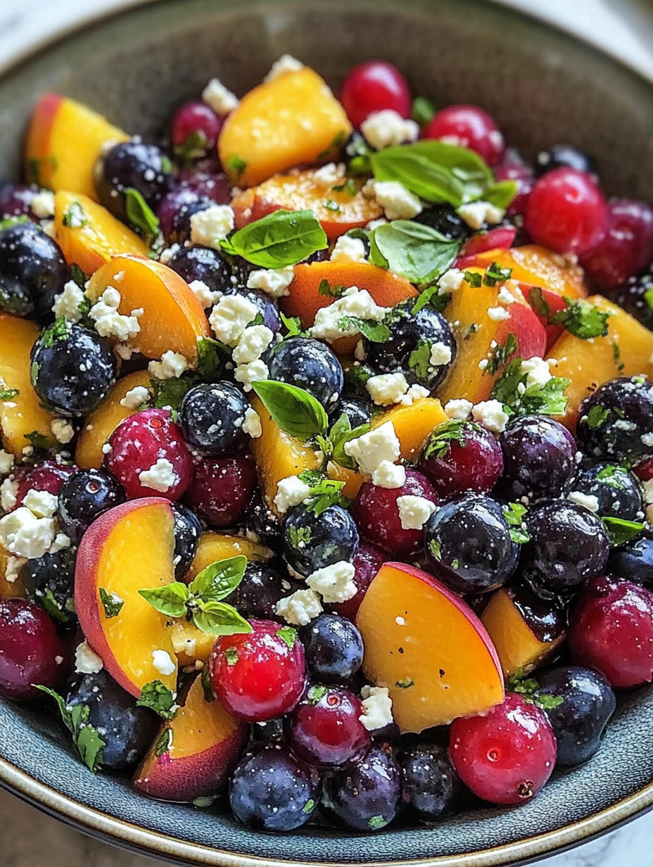 - Sweet and Salty Contrast: The juicy peaches and plump blueberries bring natural sweetness that plays perfectly off the creamy, briny feta. It’s a combo that keeps every bite exciting and balanced — total chef’s kiss material.