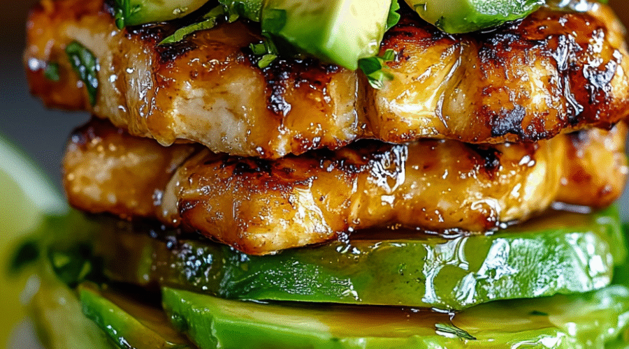 Honey Lime Chicken and Avocado Rice Stack