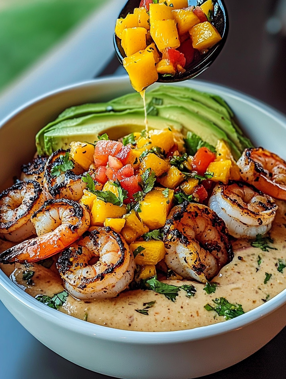 Shrimp and Avocado Bowls with Mango Salsa & Lime-Chili Sauce