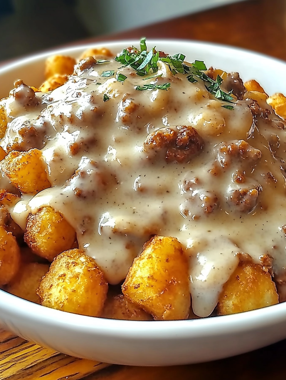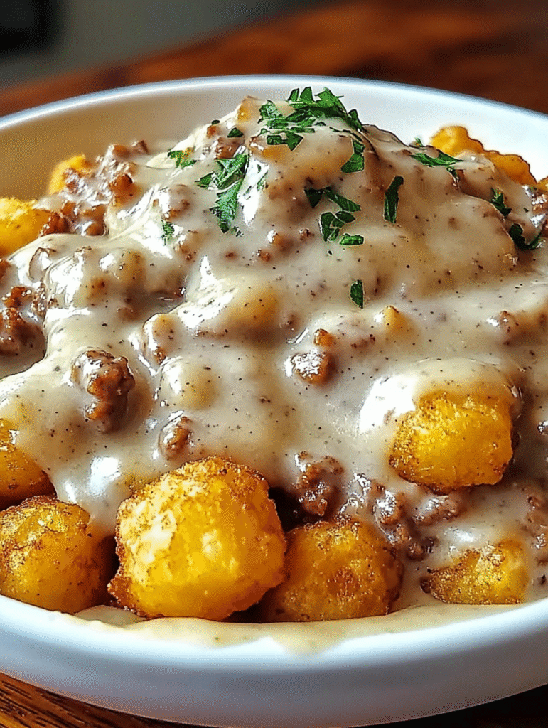There are few things in life more satisfying than waking up to the smell of sausage sizzling in a skillet—except maybe piling that sausage into a rich, creamy gravy and spooning it over a mound of crispy golden tater tots. That’s the exact vibe of this Tater Tot Breakfast Bowl with Sausage Gravy, and I promise you, it’s as hearty and comforting as breakfast gets.